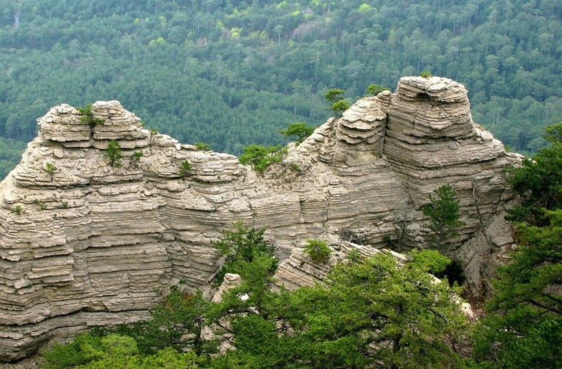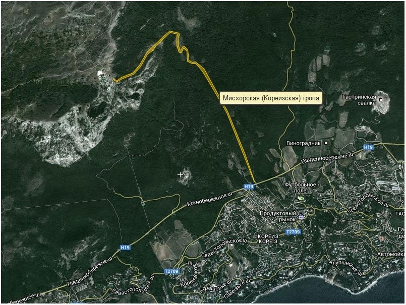 Выйдя из маршрутки и стоя спиной к Ялте, справа от вас вы увидите грунтовую лесную дорогу. Это и есть начало Мисхорской тропы. Местами она маркирована и вообще хорошо различима, не заблудитесь. Протяженность тропы – 11 километров. На пути будут два родника, обозначенные навесами и лавочками рядом, их не пропустить. Тропа будет проходить через вершинку Малый Ай-Петри, откуда открывается шикарный вид на лес и море. На подходе к плато есть небольшой крутой участок, и если у вас есть возможность, то прихватите треккинговые палки – они облегчат подъем. Выйдя на плато, вы окажетесь на большой обзорной площадке, откуда, само собой, открывается прекрасный вид на крымские красоты, как вознаграждение за преодоление тягот восхождения. А за площадкой сразу начинается Ай-Петринский городок.