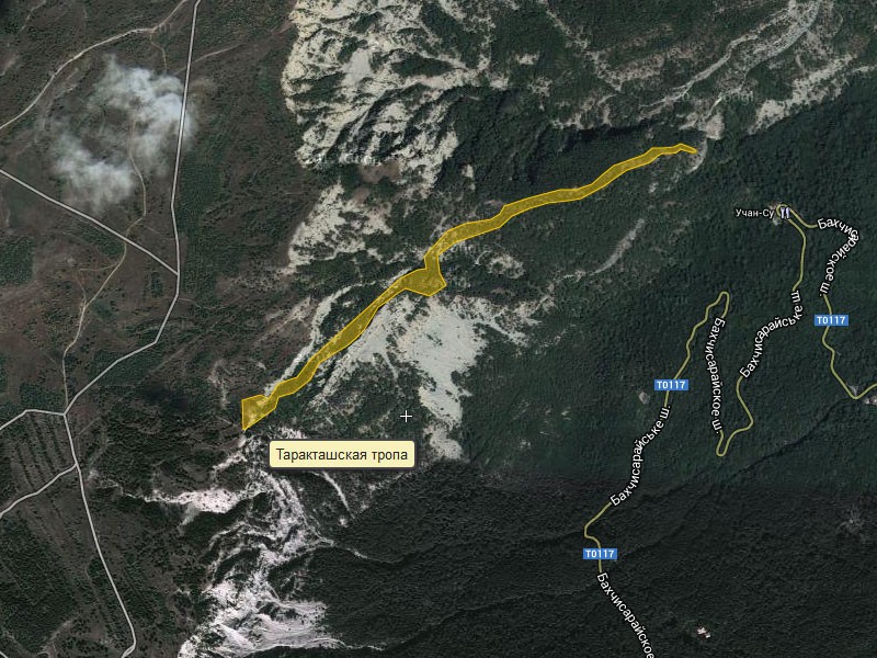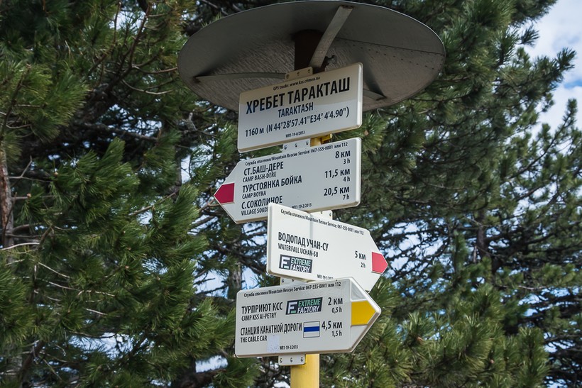 Тропа маркирована. На деревьях краской сделаны красные отметины. Цвет тропы на схеме соответствует цвету маркировки. Главное на тропе – не пропустить поворот на плато. Часть маршрута (около 2 км) совпадает со Штангеевской тропой, и лишь у одной примечательной скамейки на смотровой площадке, огороженной старым металлическим забором, они расходятся – Штангеевская идет дальше прямо, по кромке скал, а Таракташская уходит влево вверх. Другой скамейки там нет, ее невозможно пропустить. Просто от самой скамейки нужно повернуть на 90 градусов влево и топать вверх.