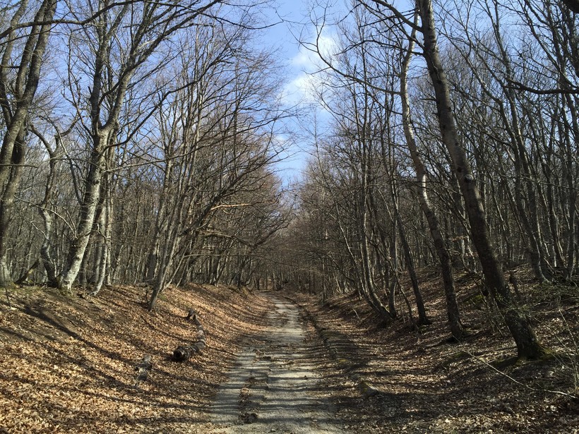 Тропа на Демерджи начинается сразу за… общественным туалетом. Но вы забудете об этом обшарпанном здании, когда перед вами появится широкая дорога среди букового леса.