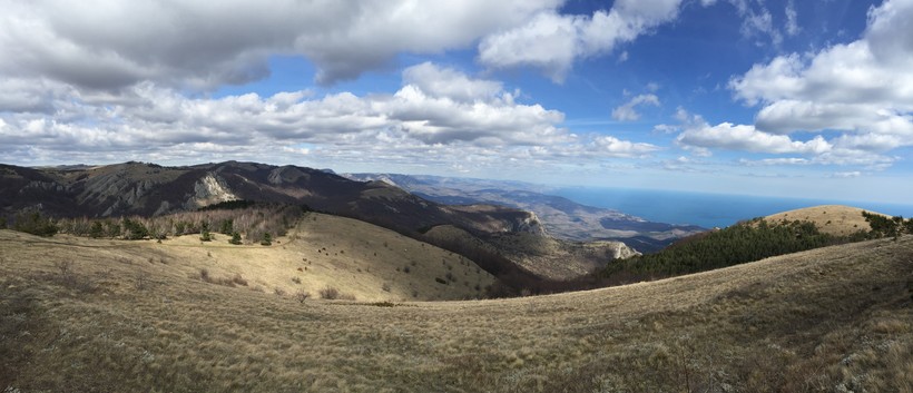 Начну с длинного маршрута. Это мой любимый путь к Долине привидений Демерджи, хоть он и начинается на приличном от неё расстоянии. Если у вас есть целый день в запасе, то настоятельно рекомендую совершить такой мини-поход. Вы пройдёте через густой буковый лес, сможете заглянуть в пещеру, пройти по тропинке у самой пропасти (и это безопасно), увидеть просторы плато во всей красе, рассмотреть величественный Бабуган и Чатырдаг, находясь напротив. И, конечно, вы увидите Долину привидений: сначала с самой её высокой точки, а потом, спускаясь и рассматривая «великанов» и «чудищ», — сверху, на своём уровне и снизу.