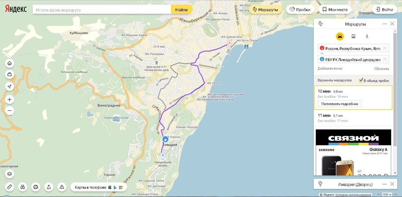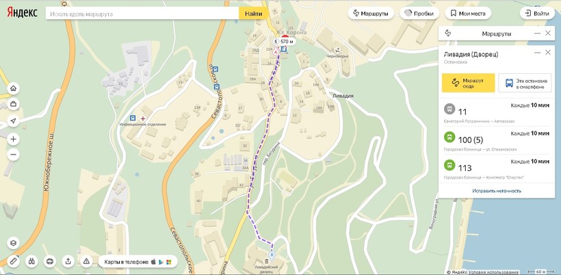 Далее пешком по территории Ливадийского парка или по поселковым улицам.