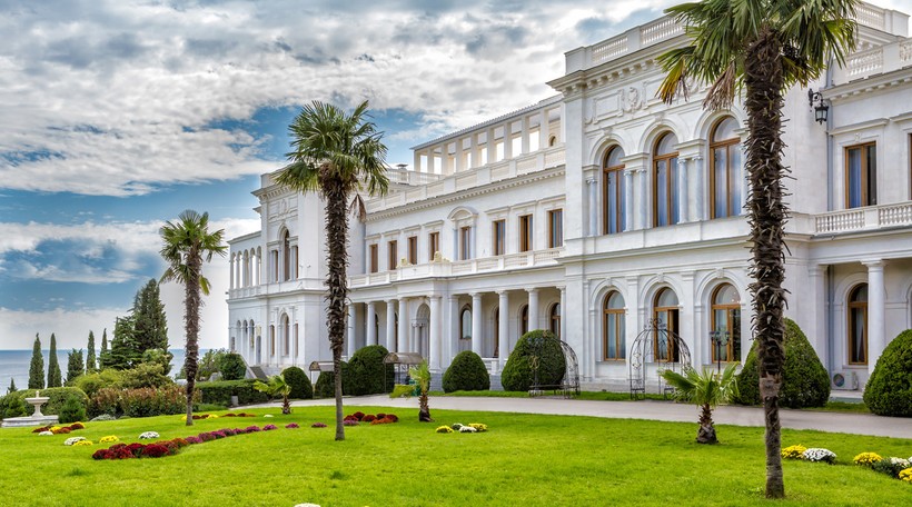 В том виде, в каком мы видим его сейчас, он был построен в 1911 году для императора Николая II и его семьи архитектором Красновым: белый дворец из инкерманского известняка и мрамора, что добывались недалеко от Севастополя. До этого времени императорская усадьба в Ливадии состояла из других, менее масштабных построек. Царская семья подолгу гостила во дворце в теплое время года, и внутренние экспозиции и комнаты членов семьи подробно рассказывают об их крымской жизни.