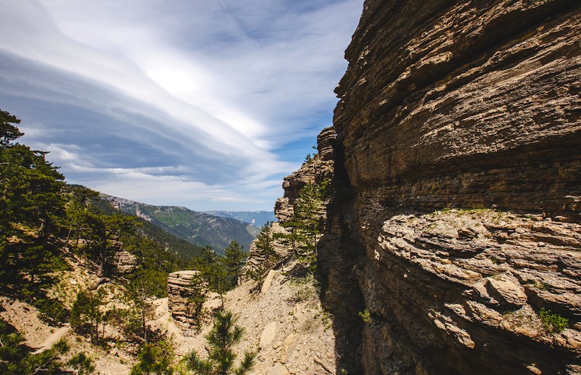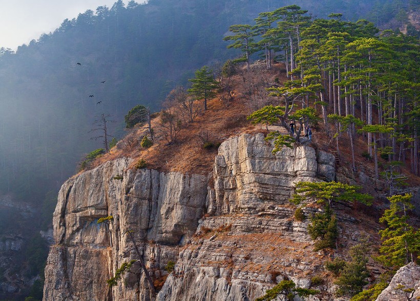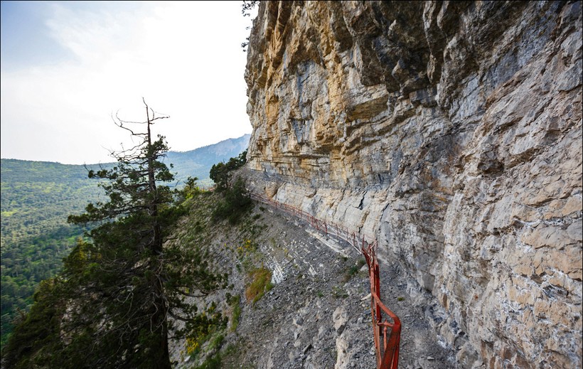 А на Штангеевской — узкая тропинка по краю обрыва вдоль высоченных скал. Идти по ней безопасно, так как она огорожена забором. Правда мягкая порода скал осыпается, и иногда сверху падают небольшие камушки. Так что не зевайте :) Оттуда открываются удивительные горно-лесные пейзажи.
