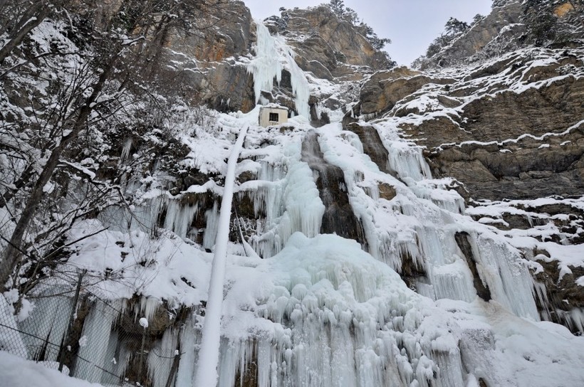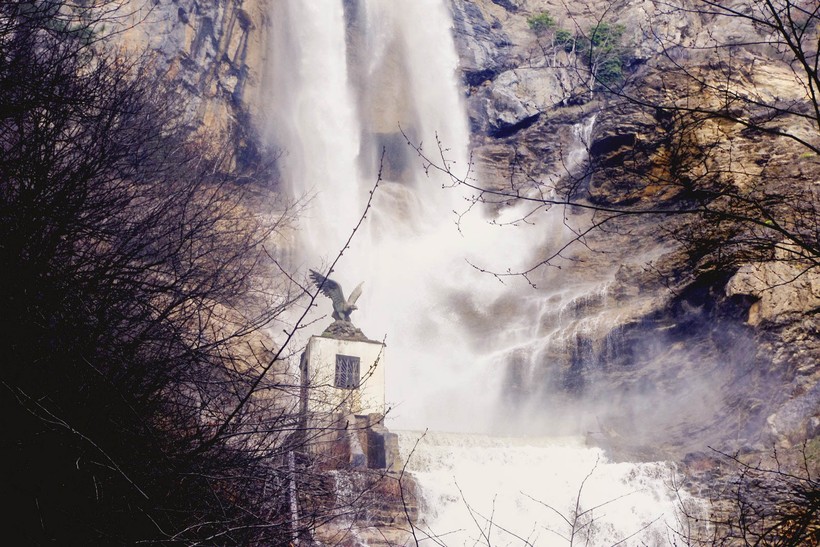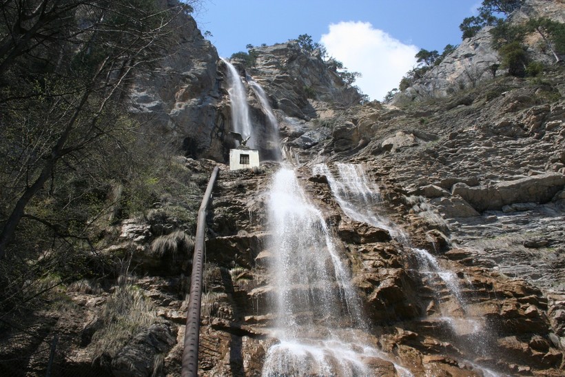 98,5 метров — именно с такой высоты обрушивается знаменитый водопад Ялты Учан-Су. При этом образуется два каскада. Часто интересует гостей Крыма и водопада Учан-Су, что за домик с орлом установлен на верхнем каскаде этой природной достопримечательности Ялты. Ничего таинственного в этом бетонном сооружении с гордой птицей на крыше нет — это всего лишь водозаборная постройка, от неё вода идёт к водохранилищу горы Могаби.