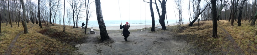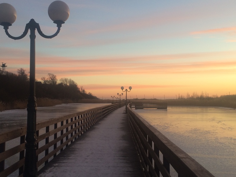 Я уже упоминала о том, что деревянный променад, появившийся здесь в 2014 году, позволяет очень комфортно прогуливаться по пляжу. Но еще более замечательно то, что часть его проходит по озерцу, образовавшемуся в бывшем янтарном карьере. Здесь можно в любое время года совершать пробежки, любоваться заводями, а также наблюдать за местными обитателями. Прошлой зимой тут жила выдра, которую прозвали Машей. Откуда она взялась — никто не знает, но Маша стала настоящей местной достопримечательностью.