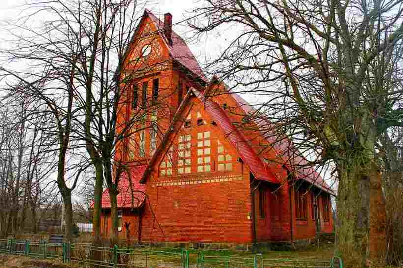 Кирха в соседнем Приморском (Гросс Курене) была возведена в 1913 году, в ней имелся орган и два колокола. Рядом когда-то находилась баптистская капелла, прихожане которой относились к общине Пальмникена (Янтарного). В послевоенные годы здесь был дом культуры, а с 2007 года зданию присвоен статус объекта культурного наследия местного значения.
