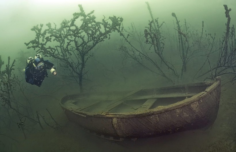Я уже упоминала выше, что озеро Синявинское, образовавшееся в бывшем янтарном карьере «Вальтер», считается прекрасным местом для дайвинга. Видимость достигает 10–15 метров, а на дне чего только нет — узкоколейка, деревья, бугристый рельеф дна, всевозможные строительные конструкции и янтарь… Здесь имеется 2 термоклина (то есть теплые и холодные слои воды не смешиваются), разница между слоями воды достигает 10 °С .