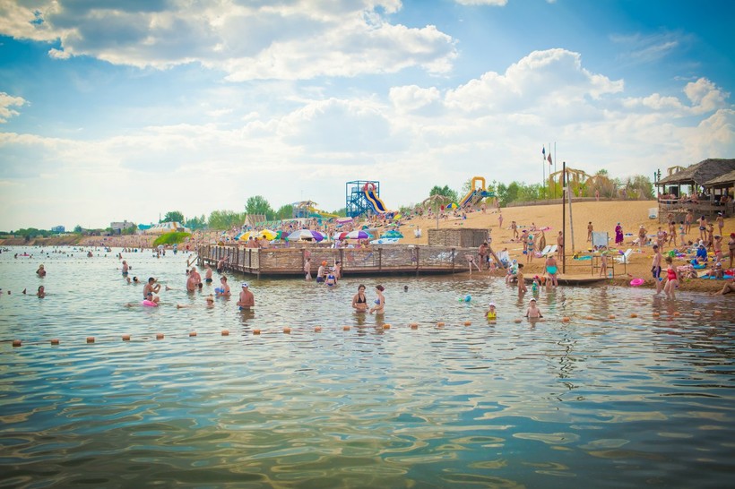 Ну, вот мы и оказываемся на самом настоящем курорте со всеми составляющими — загорелые люди, переполненные пляжи (я расскажу, как этого избежать) и теплое озеро с всевозможными развлечениями. Средняя температура в Яровом 25-27 тепла, но, основываясь на личном опыте, заявляю — 35 градусов в июле обеспечено, не забывайте солнцезащитный крем! Стоит заранее мониторить погоду и стараться избежать прогнозируемых дождей, которые иногда затягиваются до 4 дней. К дождливым месяцам относится начало июня и конец августа. Но они довольно теплые и отдыхать не мешают в большинстве своем. Так как располагается город в степной местности, ветер тут постоянный, так что о всяческих летающих насекомых можно забыть и наслаждаться прохладой. Высокое содержание соли в воде позволяет купаться абсолютно всем, а само озеро очень чистое и теплое — нагревается моментально благодаря своему составу. Так что пляжно-плавательный сезон начинается уже в мае, и продолжается до сентября (в октябре ветер уже довольно холодный).