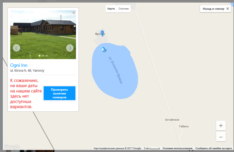 Смотрите — попробовала найти свободные номера и домики на летние месяцы поочередно и результат на фото. На самом деле различных по бюджету баз отдыха, квартир и гостиниц на Яровом уйма и практически у каждого перечисленного места для проживания есть собственный сайт для мгновенного бронирования.
