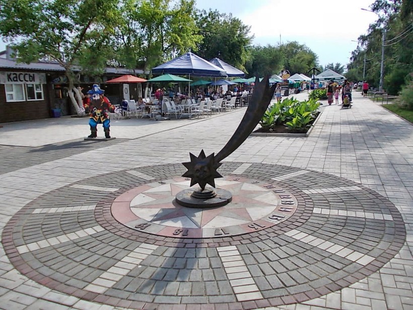 15:00 — раньше трех часов из этого развлекательного островка точно не выбраться. От души накатались, перекусили — можно и город посмотреть. Большим любителям архитектуры в Яровом вряд ли удастся получить эстетическое удовольствие от типа застройки и фасадов, но а любители прогулок наверняка будут рады пройтись по набережной. А еще любителям концептуальных фотографий будет чем себя занять, ведь вблизи набережной встречаются уютные гостиничные корпуса, по-разному стилизованные. Идем от аквапарка (причал №22) до 42го, по пути можно рассмотреть сувениры, поесть яблоки в карамели (почему-то это лакомство распространено на курорте) и просто наслаждаемся летним теплым днем и соленым воздухом.