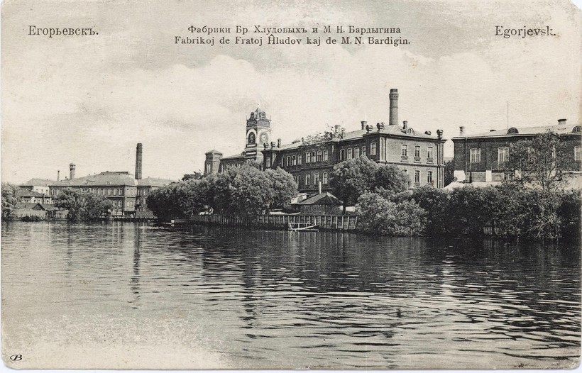 - Текстильная мануфактура купца Хлудова (ул. 8 Марта) стала визитной карточкой города. Егорьевцы зовут это место «Биг Бэн», и, действительно, башни фабрики напоминают Лондон, особенно когда над Егорьевском висит серое небо и моросит дождь. Купец Хлудов укомплектовал фабрику английскими машинами, и в 1845 году завод начал работу.