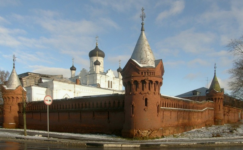 Мне больше всего нравится красная кирпичная стена монастыря, она похожа на крепостную. Впрочем, раньше монастыри имели и такую функцию: оборонительную. После сильных морозов стена покрывается белым инеем: так из нее выходит мороз.