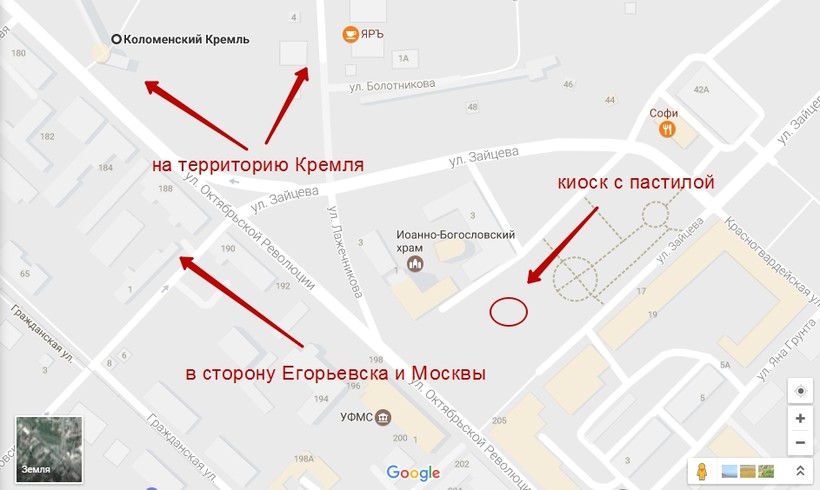 - Магазин пастилы. Конечно, в Коломну чаще едут, чтобы посетить Музей пастилы, но у меня на него времени не хватило, и пришлось зайти в магазин (даже, скорее, небольшой киоск) неподалеку от Кремлевской стены, рядом с Иоанно-Богословским храмом. Вы же можете прочитать о музее на нашем сайте поподробнее тут.