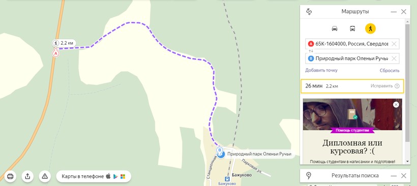 С южного автовокзала (м. Чкаловская) ходит рейсовый автобус №684 до Нижних Серег каждые полтора-два часа. Расписание можно уточнить на Яндекс.Расписаниях или по справочному телефону автовокзала +7 (343) 257-12-60. Водителя нужно заранее попросить остановиться на остановке "Поворот на Оленьи Ручьи". На трассе будет указатель на Ручьи и ответвление дороги, по которому нужно топать 2 км до входа в парк.