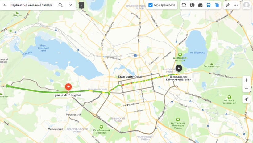 Чтобы быстро, с минимумом пересадок доехать до Шарташских каменных палаток в Екатеринбурге, вы можете использовать общественный транспорт: