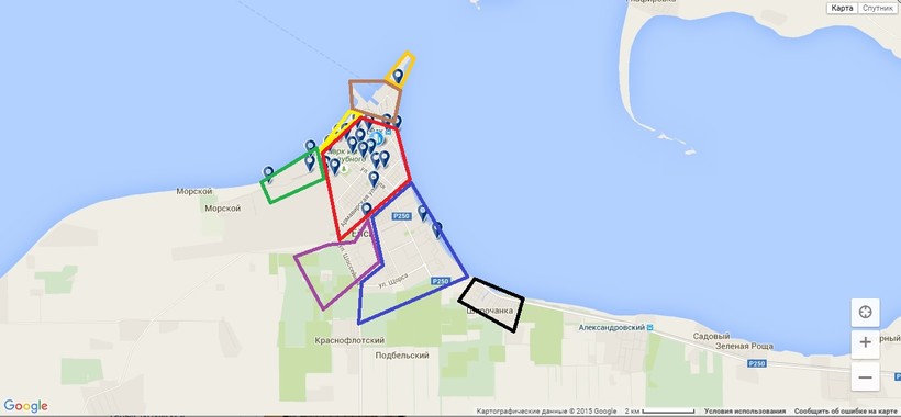 Дешевле всего будет остановиться подальше от центра города и моря, а именно – в Широчанке. Чуть дороже будет жить в Новом жилом массиве и Военном городке, дороже всего – в Купеческом городе и на Ейской косе. В Портовой зоне и Промзоне средства размещения отсутствуют.