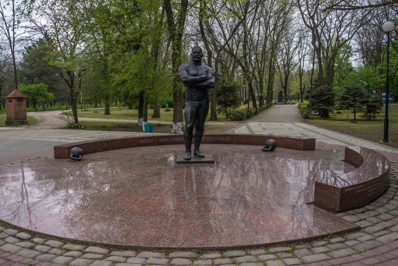 Памятник расположен в парке имени Поддубного и установлен в честь самого сильного уроженца Ейска Ивана Максимовича Поддубного – прославленного борца, не знавшего поражений.