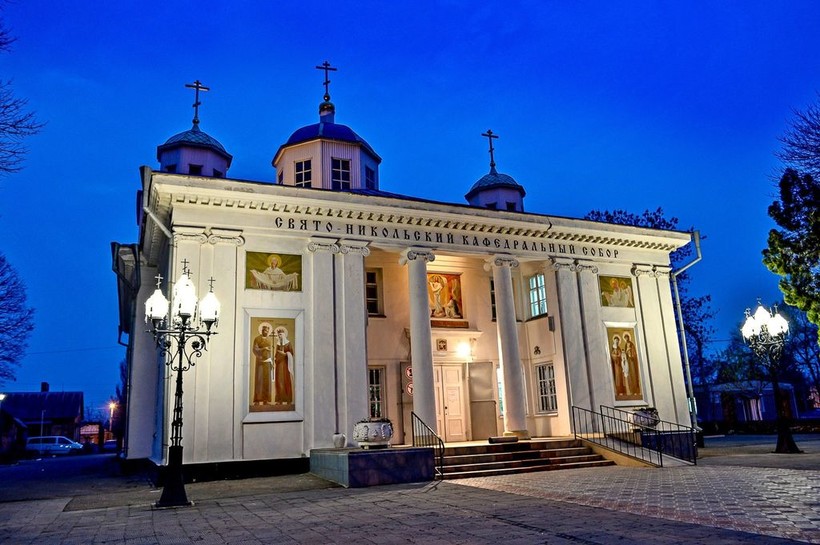 Собор был разрушен в 30-х годах и восстановлен в 90-х на месте кинотеатра «Октябрь». Невзрачный снаружи, но с богатым и впечатляющим убранством.