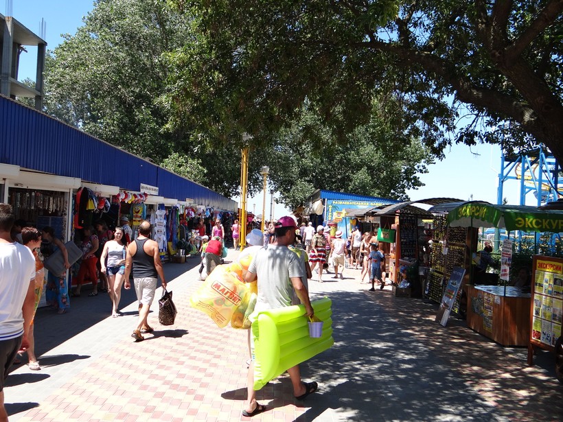 Сам пляж песчаный. Дно довольно мелкое. Территория пляжа чистая. Тут можно поиграть в пляжный волейбол, прокатиться на «банане», «таблетке», водном мотоцикле и даже на верблюде. Берег ограничен буйками, на пляже работают спасатели. Рядом с пляжем расположено множество кафе, шашлычных, чебуречных, шаурмичных и прочих заведений общепита вплоть до ресторанов на открытом воздухе. Есть места с шезлонгами, есть пляжные зонтики, под которыми можно спрятаться от солнца, в относительной близости от пляжа вы можете найти торговые ряды, где можно приобрести сувениры или всяческие полезные вещицы. На пляже работает медпункт. Словом, пляж пользуется хорошей популярностью и пользуется ею вполне заслужено.