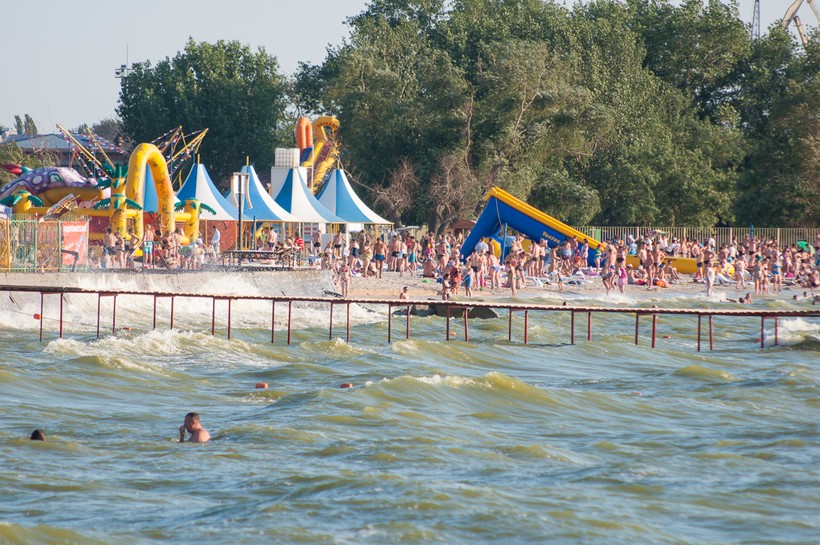 К минусам Центрального пляжа Ейска можно отнести непосредственную близость к Ейскому порту, которая сказывается на чистоте воды в прибрежной зоне. Еще один минус – это платные туалеты с не слишком демократичным ценником в 20 рублей, из-за которого многие предпочитают экономить и делают «маленькие дела» просто заходя в море по пояс.
