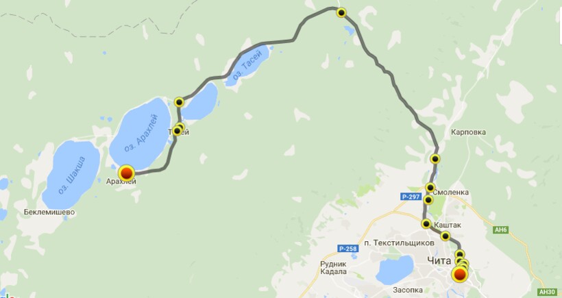 Большинство туристов, приезжающих в Забайкальский край, едут на о. Арахлей из Читы. В среднем дорога занимает час-полтора, все зависит от пробок. Чтобы не заблудиться, советуем всем путешественникам, которые поедут к водоему на личном автомобиле, вбить в навигатор координаты водоема — 52.205115, 112.874950.