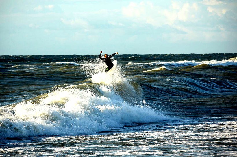 А теперь немного об экстриме на прохладной Балтике. Сёрфинг! И катание на сапе (SUP). Оказывается, на Балтике катаются на сёрфе и на сапе тоже — сап-сёрфинг.