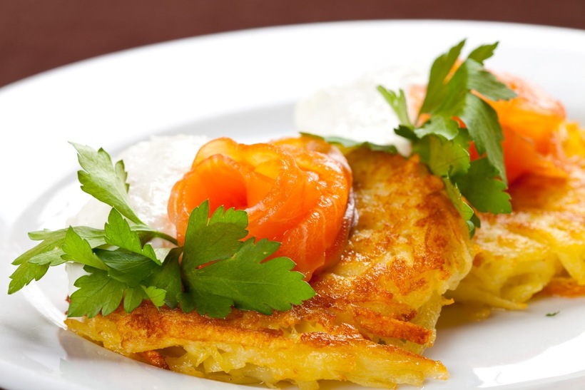 - И, конечно, картофельные драники с сёмгой. Я люблю драники, сёмгу тоже. А тут два удовольствия в одном!