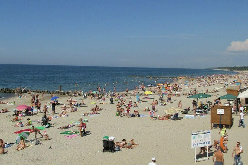 Пляжи города-курорта широкие, чистые и комфортные. Для удобства отдыхающих предусмотрены кабинки для переодевания и туалеты. Чтобы песок с пляжа не вымывался морем, построены деревянные волнорезы. Каждая такая конструкция выглядит, как длинная и ровная вереница бревен. Людям ходить по ним опасно, а вот птицы на волнорезах отдыхают с удовольствием. Сильнее всего вода в море прогревается к августу: это лучшее время года для пляжного отдыха на балтийском побережье.