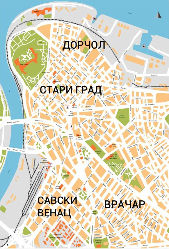 Останавливаться, конечно, стоит в центральных районах: Стари Град, Дорчол, Врачар. Именно здесь сконцентрированы основные достопримечательности города и бурлит жизнь. Район Савски Венац, хоть и является центральным, но, так как привокзальный, самый грязный и мрачноватый – не советую.