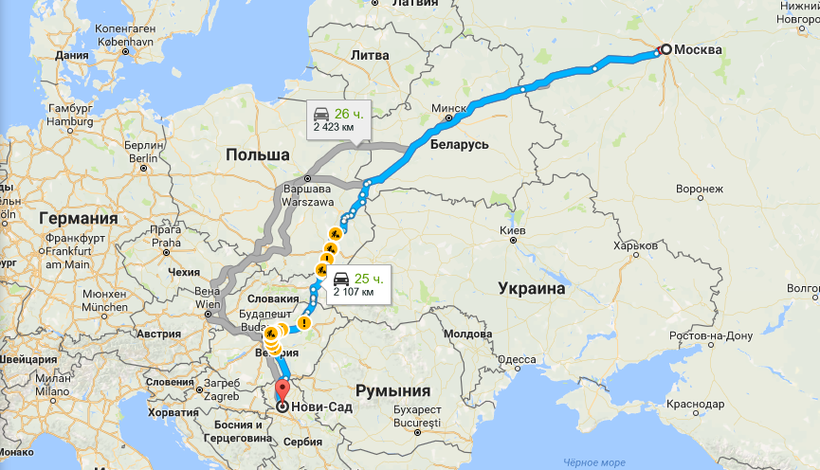 Ехать из Москвы в Нови-Сад на автомобиле есть смысл только в том случае, если у вас есть открытый шенген. У меня на момент моей поездки не было, поэтому этот вариант для меня отпал сразу.