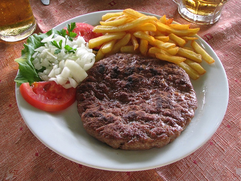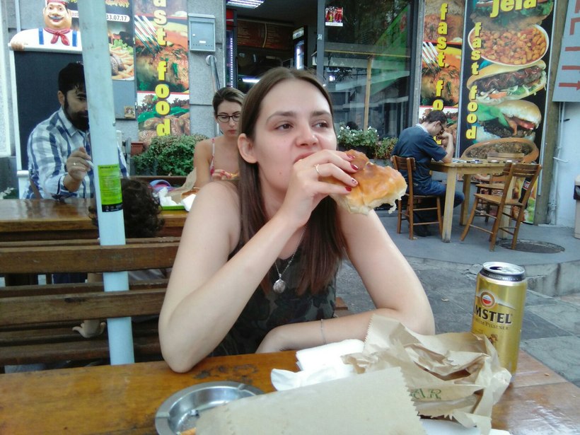 В первом случае ее приносят на тарелке с гарниром, во втором подают как бургер. Во втором варианте есть малая, средняя и большая плескавица. Умоляю, не жадничайте! Даже если вы очень голодны, берите хотя бы среднюю: порции просто огромны.