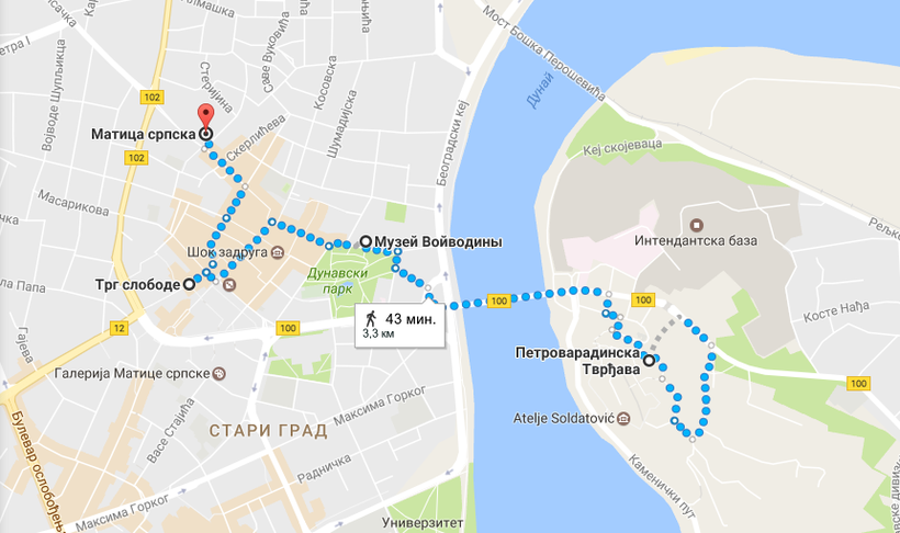Если с площади Свободы пройти по улице Йована Змая, а потом свернуть на Дунайскую улицу, можно попасть в Дунайский парк. Местные иногда сравнивают его в шутку с Центральным парком в Нью-Йорке. Масштабы, конечно, не те, но суть похожа — зеленая зона в самом центре города.
