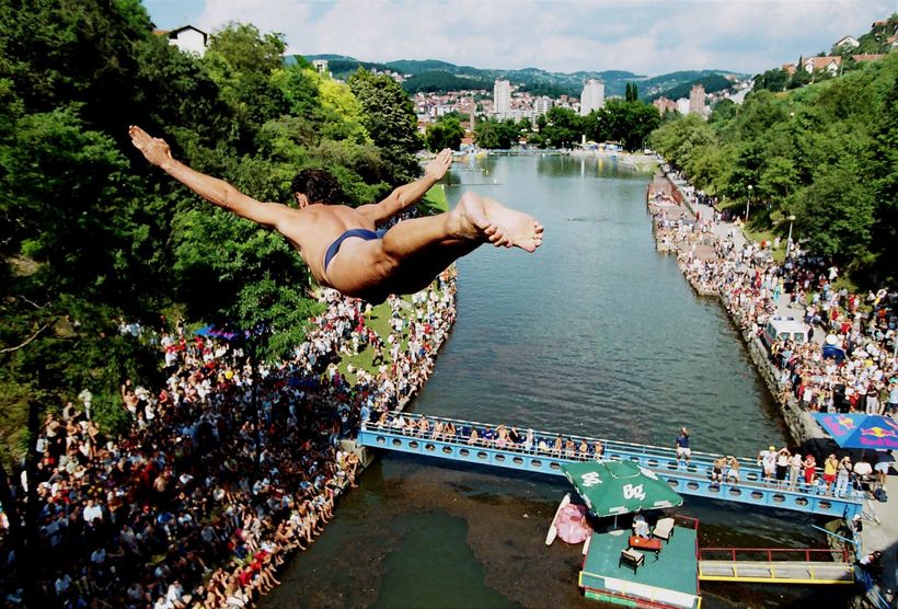 Там даже устанавливают водяные горки — так что можно сказать, что тут есть свой мини-аквапарк. Кстати, это не единственное развлечение местных. Ужицкие парни, например, очень любят прыгать в речку с довольно высокого моста. Можно на это посмотреть, а можно даже поучаствовать. Лично я предпочитаю первый вариант.