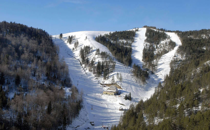 - У Бели бора две трассы: одна совсем легкая, для новичков, вторая — немного сложнее, но тоже квалифицируется как легкая. Обе трассы довольно короткие, самая длинная из них составляет 380 метров.