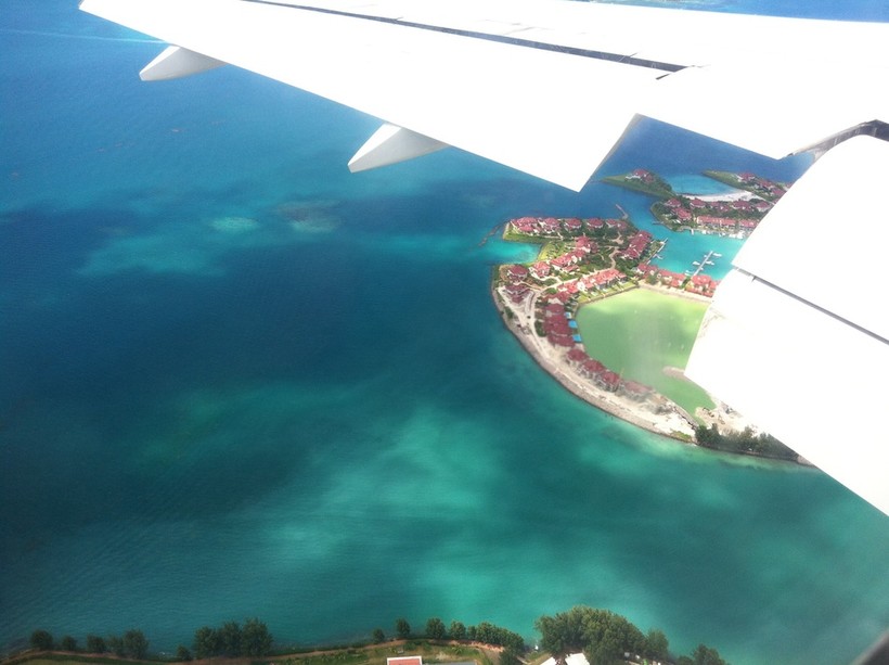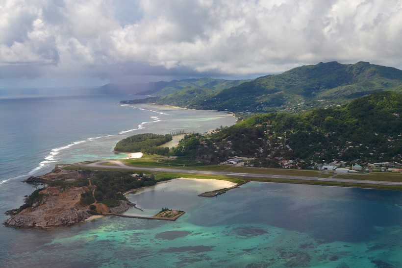 Аэропорт на острове Маэ находится прямо на берегу рядом с Eden Island — насыпным островом с идеальными отелями и виллами, которые с самолета кажутся еще более идеальными.