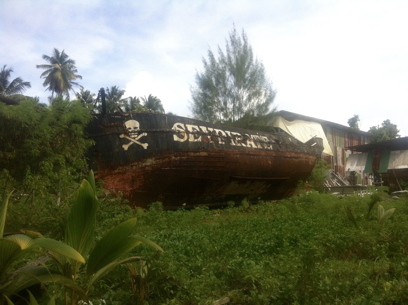 А еще увидеть огороды и старый разрушенный корабль с пиратской символикой.