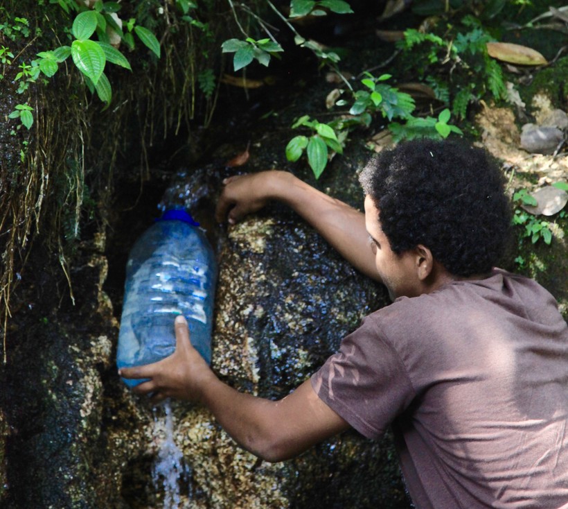 По дороге наверх можно набирать чистую воду из «мини-водопадов».