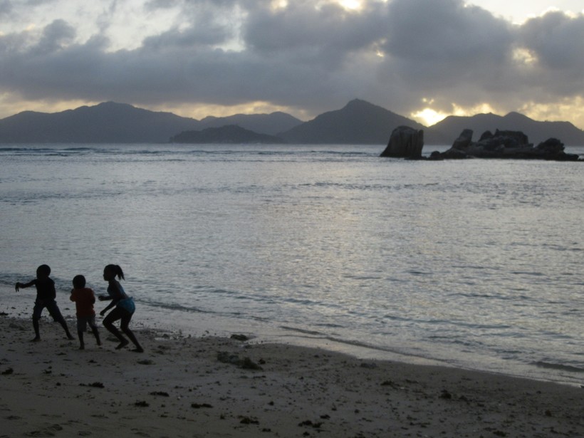 Как это обычно бывает на Сейшелах, вечером наступила полная темнота, и мы не без труда двигались к дому. Вдруг (как обычно, сливаясь с темнотой) нас догнали пара испуганных и запыхавшихся кенийцев с вопросом: «Вы же были на пристани, вы случайно не брали ничей мобильный телефон?». Мы (немного шокированные то ли их вопросом, то ли тем, как они здесь оказались) сказали, что точно не брали. Оказалось, что на полпути на пароме кто-то из кенийцев выяснил, что потерял телефон.