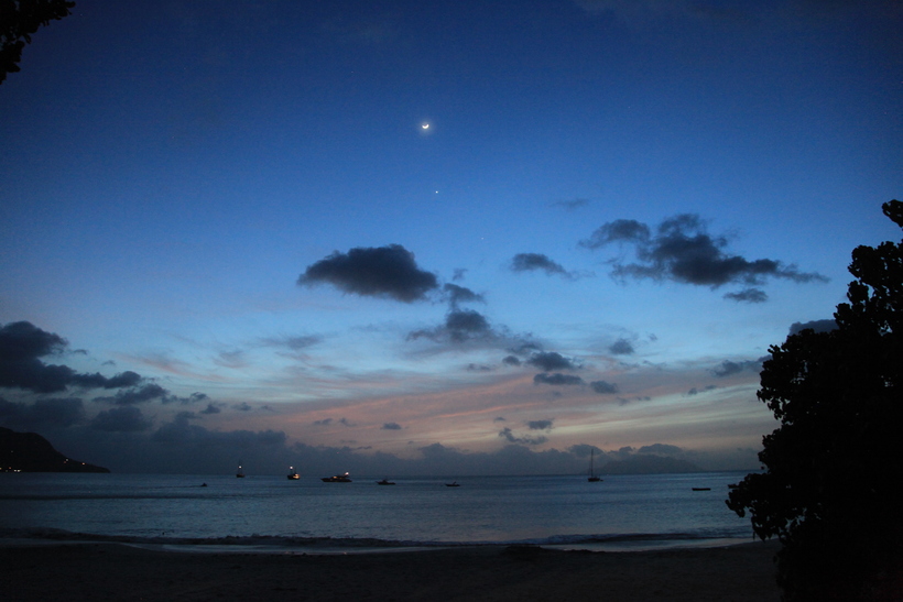 Темнеет на Сейшелах внезапно. За пределами отелей фонари мало где есть. Если вы не успели добраться до дома и идете где-то по проселочной дороге, можно попасть в такую темень, что придется передвигаться чуть ли не на ощупь. Даже фонарик на телефоне плохо помогает.
