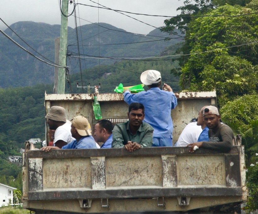 Когда я рассказала, что нередко оказывалась в такой ситуации, мои знакомые сейшельва были в шоке. По их словам, с наступлением сумерек туристу одному лучше вне отеля не гулять. Они опасаются в первую очередь индусов, которых на Сейшелах очень много. Почти все строители и дорожные рабочие индусы. Утром и вечером их можно увидеть едущими на работу и с работы… в кузовах грузовиков.