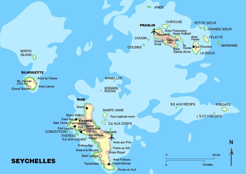 На Сейшелах есть три населенных острова: Маэ, Праслин и Ла-Диг.