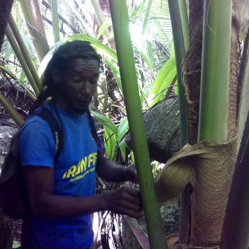 На Праслине находится национальный парк Валле-де-Мэ (Vallee de Mai) с зарослями знаменитой пальмы коко-де-мер. Это обязательный пунктик для посещения у большинства туристов. Плоды растут высоко, поэтому хорошо рассмотреть или потрогать их не получится. Хотя на отдельном столе лежит специально сорванный плод — для фотографий.