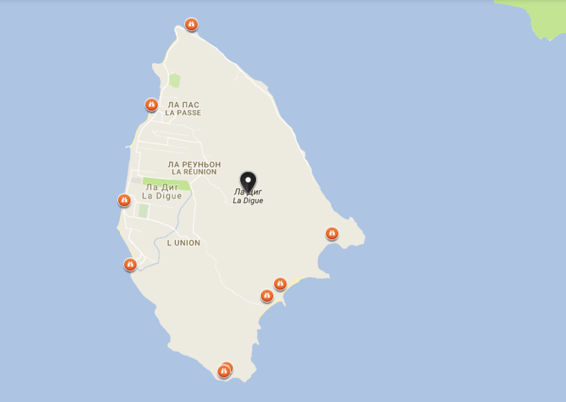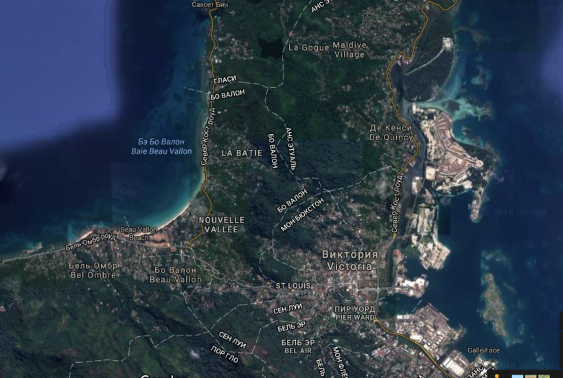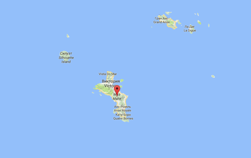 Сейшелы — это гряда из 115 островов к северо-востоку от Мадагаскара, затерянных на просторах Индийского океана. В Google maps они начинают проглядываться только на пятом клике на кнопку «Увеличить масштаб».