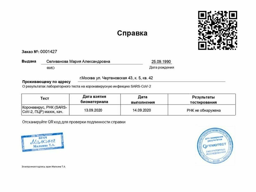 - получить справку с отрицательным результатом ПЦР на английском языке и с печатью клиники;
