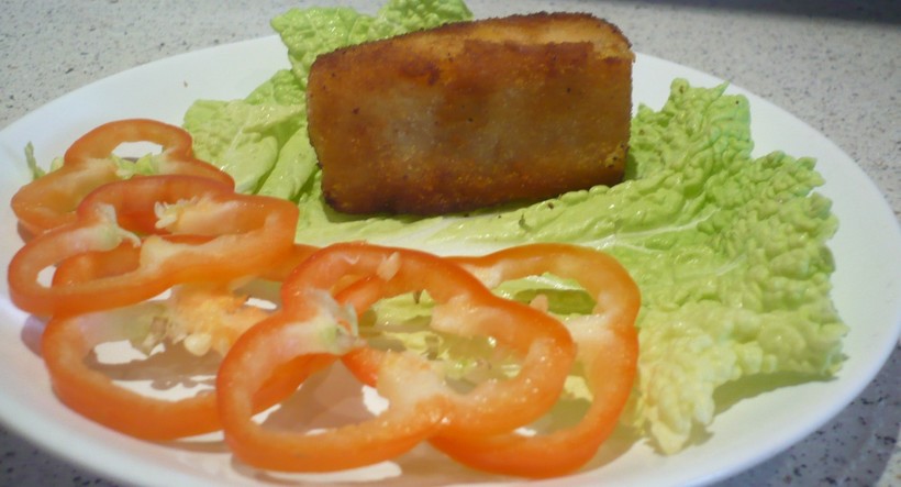 В панировке, со специями. Вполне может считаться самостоятельным блюдом. В меню это обычно называется "выпражанний сыр". Подается часто с грибами и ветчиной либо же с овощами. Словаки считают это своим ноу-хау.