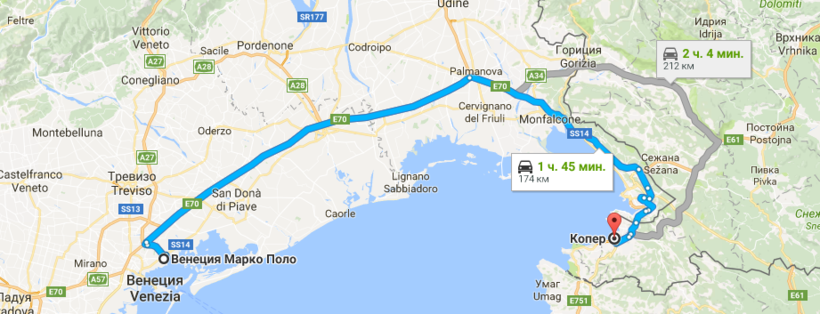 Поскольку расстояние от международного аэропорта Венеции, Италия (Марко Поло) до словенского Копра всего 160 км, то я рекомендую рассматривать аэропорт Венеции при поиске оптимальных билетов до Словении.