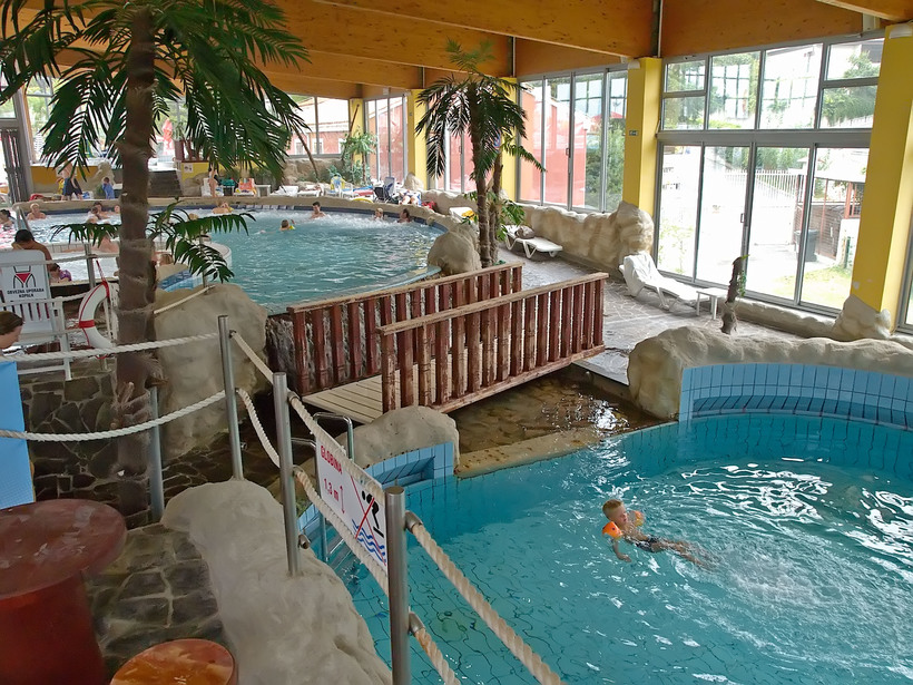 В любой другой сезон аквапарк в Жустерне гарантировано понравится вам и вашему ребенку. Там всего лишь одна горка, но есть большой бассейн с морской водой, теплые джакузи и маленький бассейн для малышей.