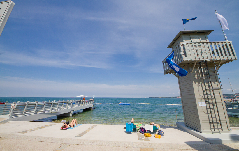 - Apartment & Suits Veneziana, стильные, четырехзвездочные апартаменты, расположенные в исторической части города. Единственные апартаменты такого уровня в Копре. Предлагаются как номера с завтраком, так и апартаменты, очень близко находится городской пляж. Размещение на всю семью вам обойдется в среднем 100 EUR за ночь. В густонаселенной Европе, в отличие от той же самой Турции, частных пляжей практически нет, поэтому все предложения апартаментов, гостиниц, с картинками пляжей указывают на то, что рядом есть городской пляж и он выглядит следующим образом. Особенно это касается Словении, береговая линия которой всего 46 км. Делюсь этой общеизвестной информацией, вспоминая рассказ хозяйки апартаментов про бронирование номера гостем из России, который готов был заселиться только при условии, что сфотографированный пляж принадлежит этим апартаментам. Словенцы смеялись, а мне было страшно неловко за соотечественника. Прекрасно понимаю, что эти единственные две недели в году хочется отдохнуть с шиком, но в Словении все как бы немного частное. Здесь нет общественного, а, значит, бесхозного.