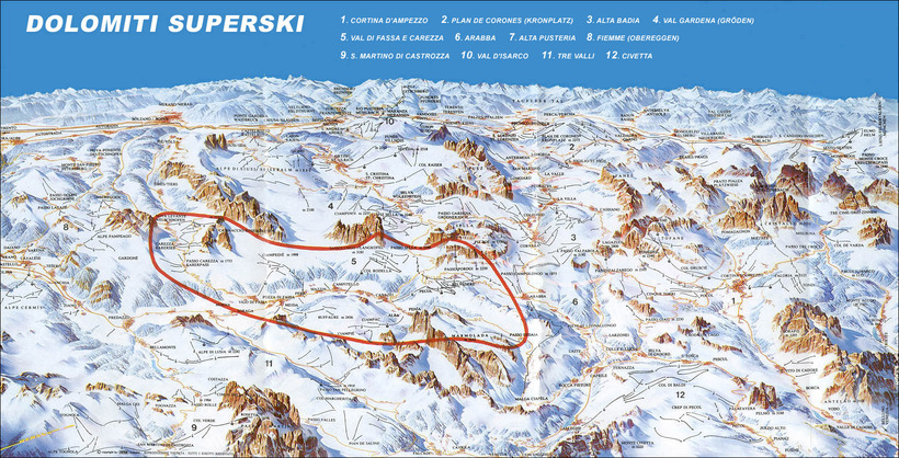Ближайшие горнолыжные курорты Италии расположены в Доломитах, уникальных по своей красоте горах. Самый известный из них – Доломиты Суперски, который объединяет в единую зону катания шесть горнолыжных курортов. На сегодняшний день – это самая большая зона катания в мире с единым ски-пассом, он вам обойдется в среднем от 39 до 49 EUR/день в зависимости от сезона.