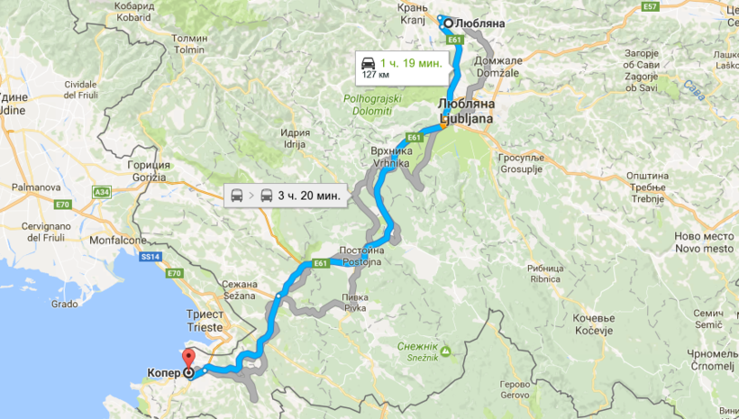 Затем можно продолжить путешествие также на поезде от Вены до Любляны (с одной пересадкой), цена в один конец около 60 EUR, а там уже на поезде/автобусе от Любляны до Копра за 9–11 EUR.